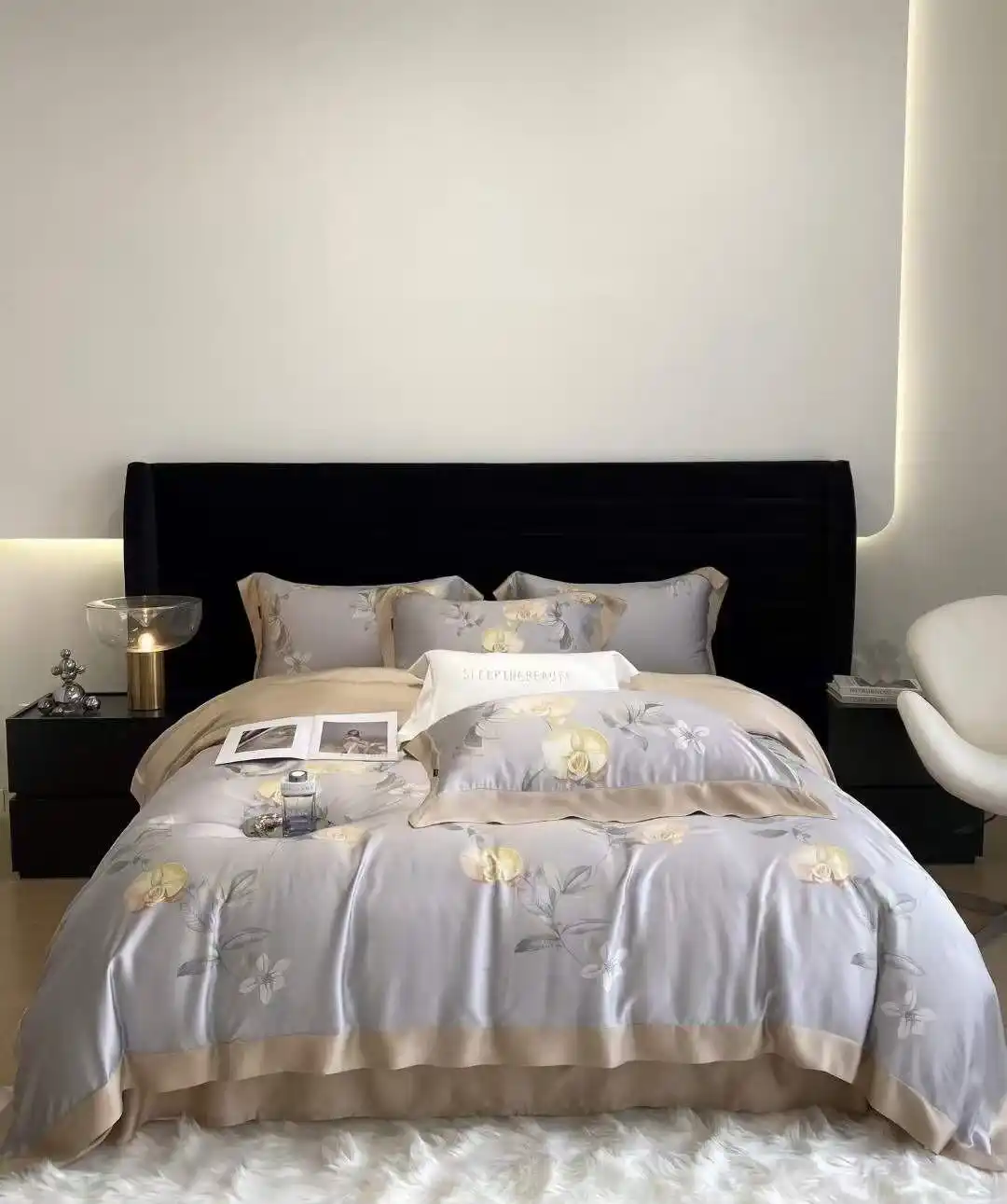 頂級皇室規格的100%60支天絲,布料更加柔軟絲滑,有光澤感好,細緻,親膚手感更加細膩輕薄,體驗各國皇室成員使用等級的床上用品。天絲,並非絲的名稱,而是奧地利蘭精公司(Lenzing)中的品牌名稱,一塊布料纖維含量超過30%萊賽爾纖維(Lyocell)或30%莫代爾纖維(Modal),才可稱為天絲(Tencel)